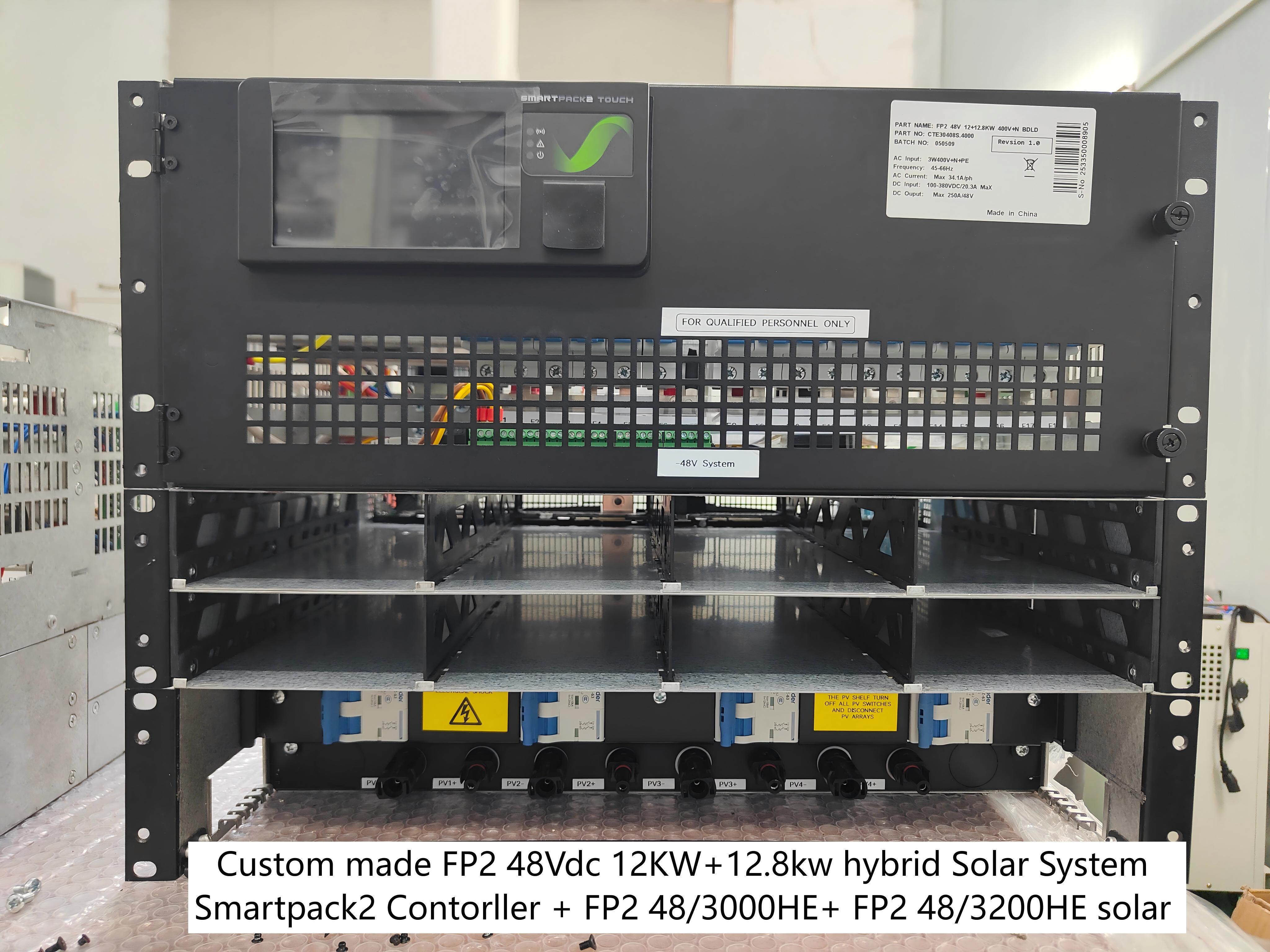 النظام الشمسي الهجين FP2 48Vdc 12+12.8KW 400V+N BD LD 3 مرحلة 230V Smartpack2 المتحكم Flatpack2 48/3200HE الشمسية