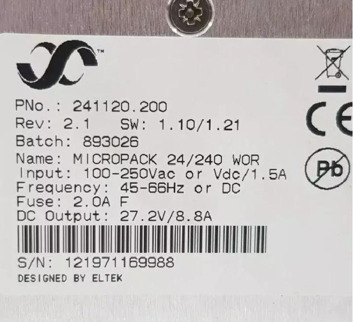 وحدة Eltek Micropack Rectifier 24V/240W (رقم الجزء: 241120.200)